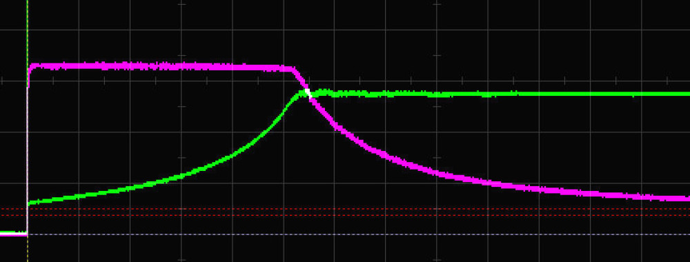 Відносна ВАХ модуля 16,8В 10А. Часова лінійність відсутня - навантажено на термістор